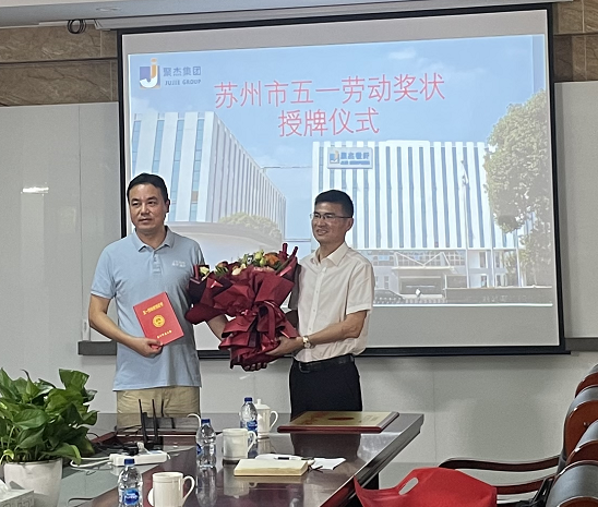 2022年6月16日上午,區總工會一行領導親自上門授牌“蘇州市五一勞動獎狀”榮譽.
